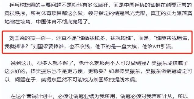 事实上,我们也能从贺晓龙的言语当中,感受到他对刘国梁的不满,他表示,刘国梁属于“谁能帮我销售,我就捧谁”的人,而他所做的一切就是为了给WTT引流。
