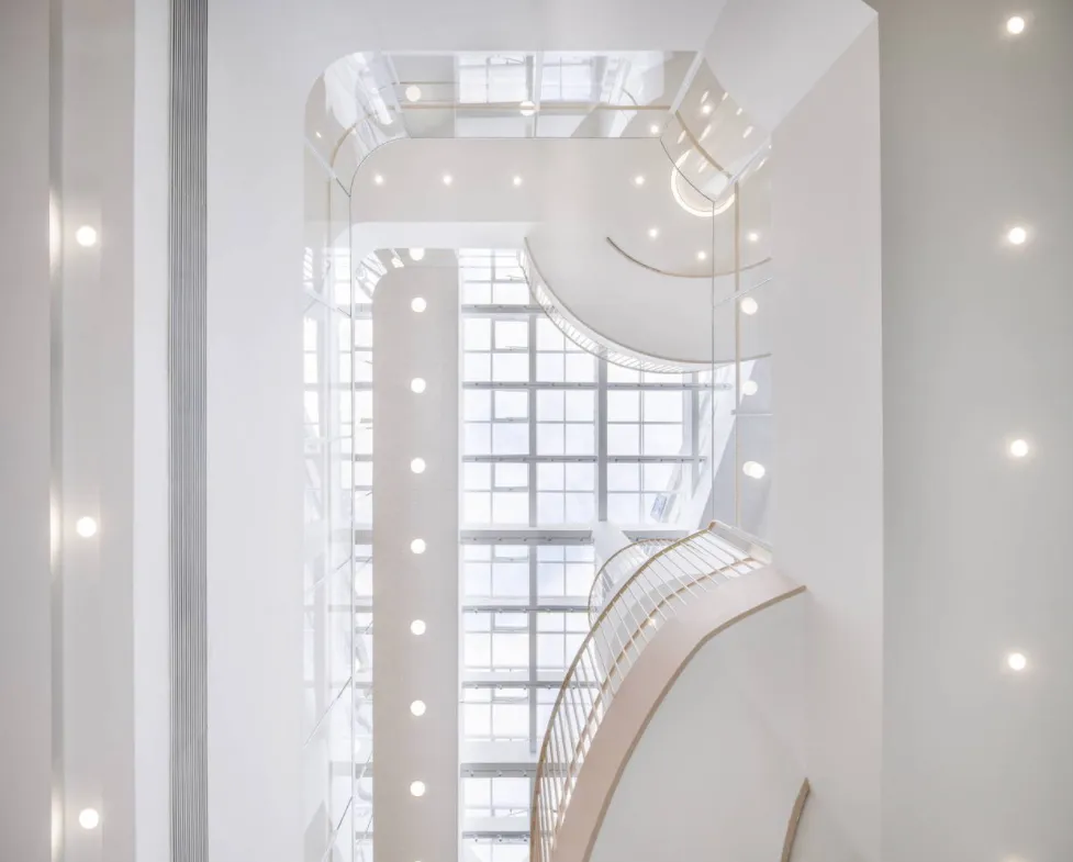 建筑内部同样秉持着开放、明亮的设计原则。中庭的透明雨棚为内部提供了充足光照,挑空的设计更引入了外部的自然风,确保了空气的自由新鲜。