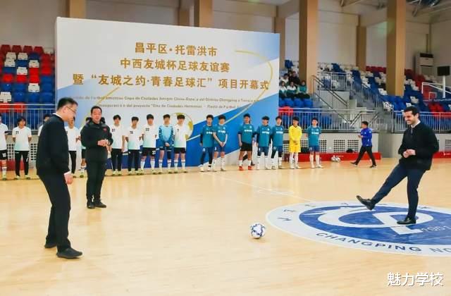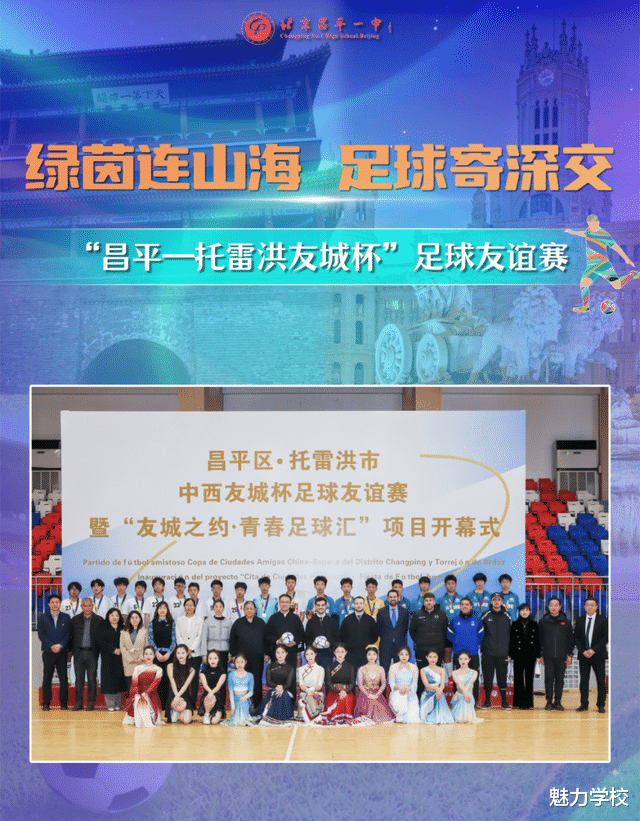 2026年2月3日下午,昌平一中校园内氛围热烈,“昌平—托雷洪友城杯”足球友谊赛在我校隆重举行。西班牙托雷洪市市长亚历杭德罗·纳瓦罗·普列托率政府代表团远道而来,与昌平区副区长张硕、区友协会长梁士强等领导嘉宾齐聚一堂,共同见证并参与这场融合体育竞技、文化交流与国际友谊的盛事。