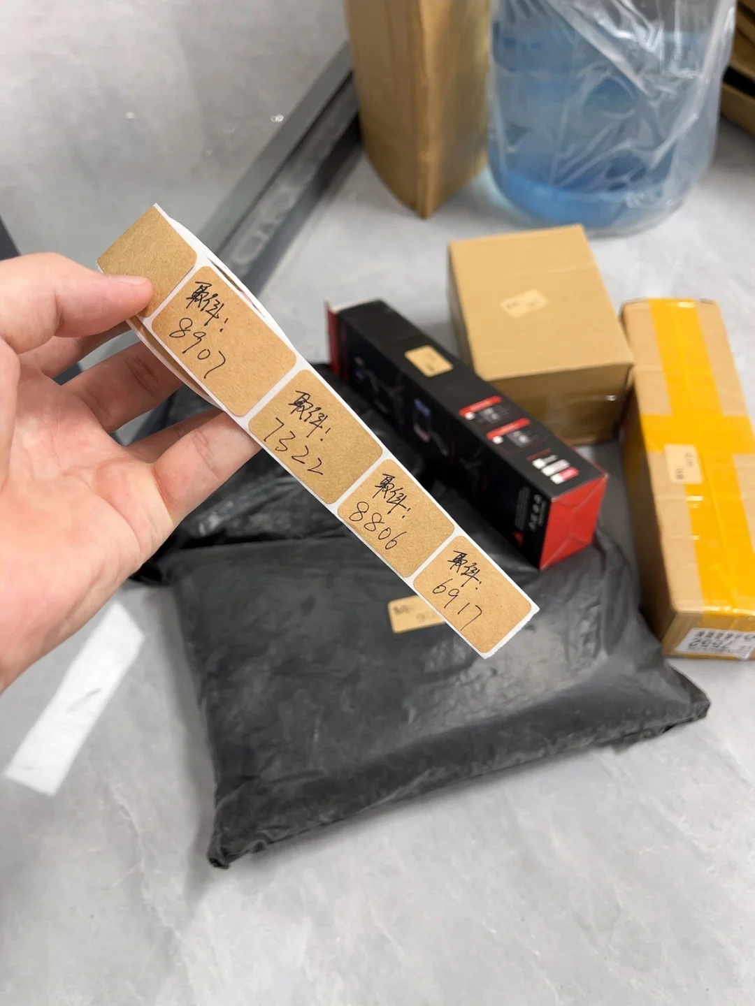 没想到,它真的解决了退货容易弄混的问题。贴上它,然后标注上取件码,这样快递小哥上门拿快递的时候就一目了然。