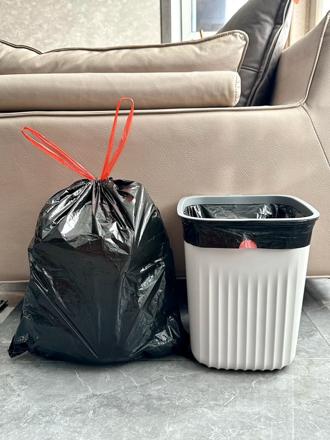 还贴心的设计了抽绳,方便打包垃圾。