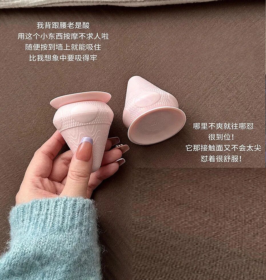 只需要将其固定在门上、墙上甚至任何一个地方,再自己往后靠,就可以借助接触面达到按摩的效果。