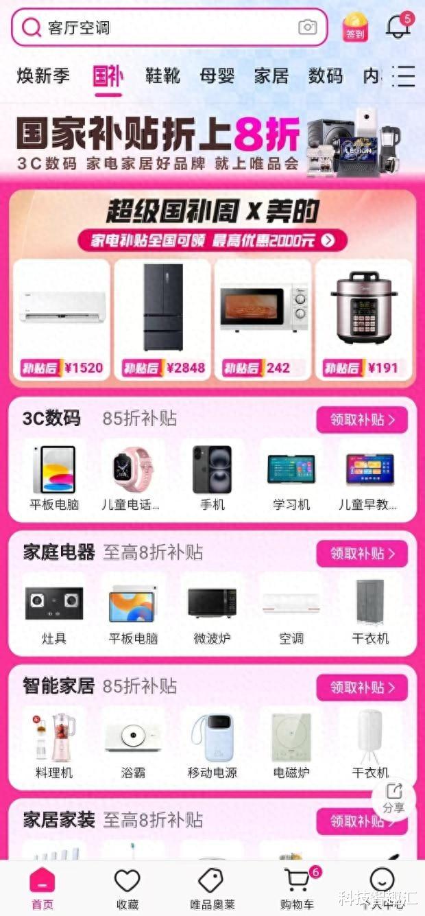 在各个平台看了一下,每个平台都有国补,不过逛到唯品会却有意外的惊喜,没想到美的最近在唯品会上面搞“超级国补周”活动,很多产不仅品牌打折,平台也有深度折扣,关键是还能叠加国补使用。