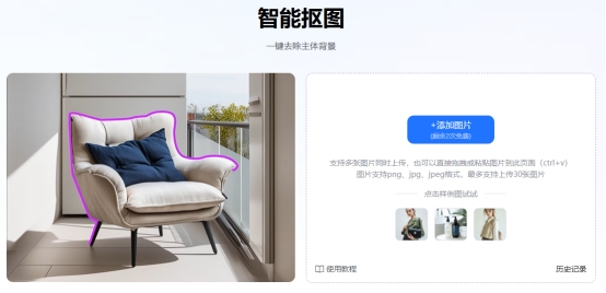 上传图片后可以直接抠出主体,还可以替换背景,如纯色、透明底或其他场景背景等,用它可以很快的制作出电主图。