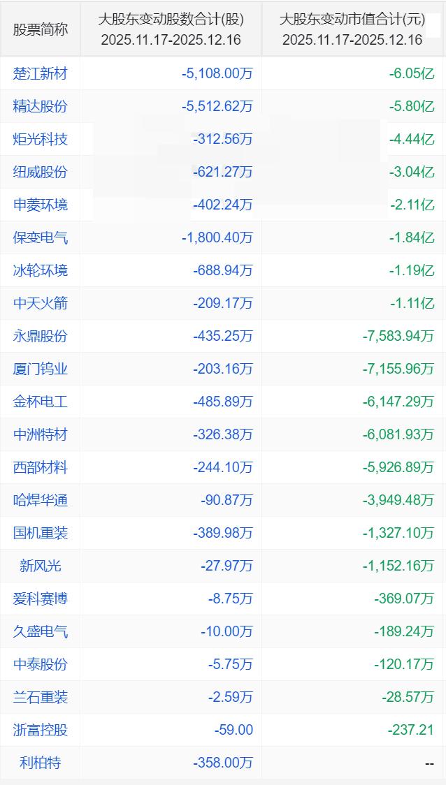 就不一一赘述了,我已经将名单按照最近一个月,减持金额排列,放在下方,大家可以自行查看。
