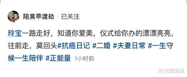 此后的婚姻生活中,两人一直携手并进,而其老公也没有放弃她,近四年的抗癌生涯,就足可看出他对玲宝的爱,希望玲宝能够一路走好。