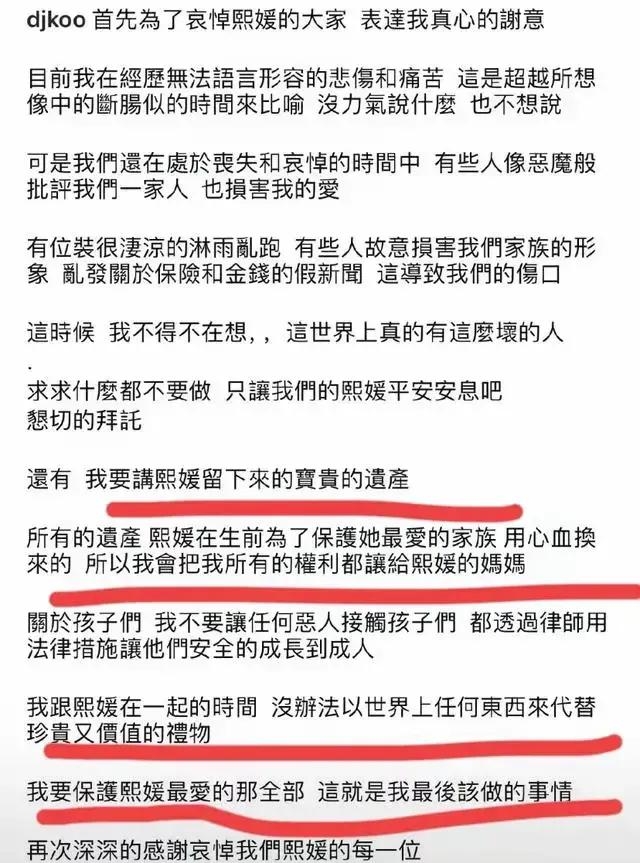 房子是 2016 年汪小菲买的,首付是他付的,房贷也是他在还,装修的时候他还亲自盯着,选材料、搞设计,前前后后砸了快两千万台币进去。结果呢,房子登记在大 S 名下,离婚之后汪小菲也没住几天,反倒是后来大 S 再婚,现任丈夫具俊晔住了进去。现在大 S 不在了,这房子该怎么处理,一下子成了焦点。台湾的法律跟咱们这边不太一样,配偶和子女是第一顺位继承人,父母反而得往后排,所以 S 妈作为妈妈,按法律暂时还分不到遗产,反倒是具俊晔作为配偶,和两个孩子一样,有权利分这块 “蛋糕”。