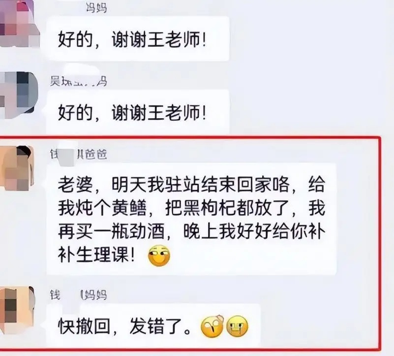 某日深夜十点,某小学三年级的班级群突然跳出消息提示。正当家长们以为是教师发布作业时,屏幕上赫然出现 “亲爱的,今天你答应我的‘特别奖励’还算数吗?” 的私密对话,紧随其后的玫瑰花表情包更让群内气氛瞬间凝固。发消息的张先生与李女士在意识到误操作后疯狂尝试撤回,却发现系统显示 “该消息不支持撤回”,夫妻俩盯着手机屏幕冷汗直流。