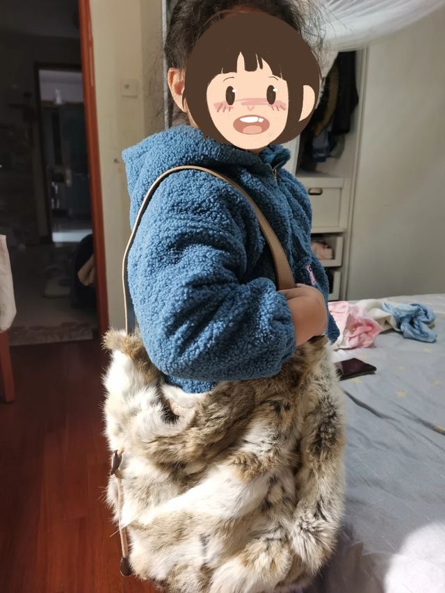缝好后把整个帽子从里往外翻过来,让毛茸茸的一面朝外,一个可爱又温暖的毛绒小包就初具雏形了。
