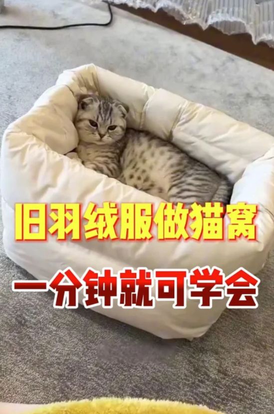 05. 给猫咪一个豪华羽绒“豪宅”家里有猫主子的朋友,这个改造一定会让猫咪爱死你!根本不需要动针线,只需要一点“叠衣服”的技巧。