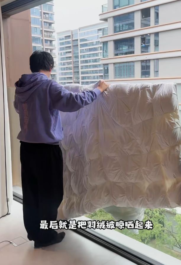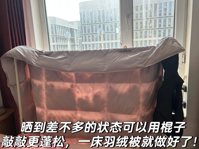 晒的时候时不时拍打一下,让羽绒更蓬松。等完全干透,一床轻盈暖和的羽绒被就诞生了!自己做的,盖着成就感都不一样。