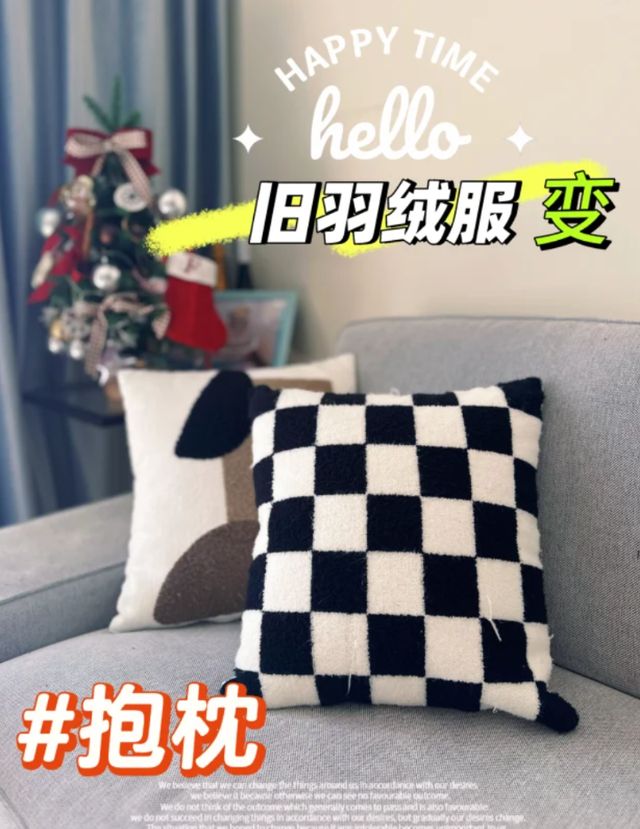 04. 填充抱枕,客厅里的温暖角落旧羽绒服改抱枕,可以说是最省事、效果最直观的改造之一。有两种思路: