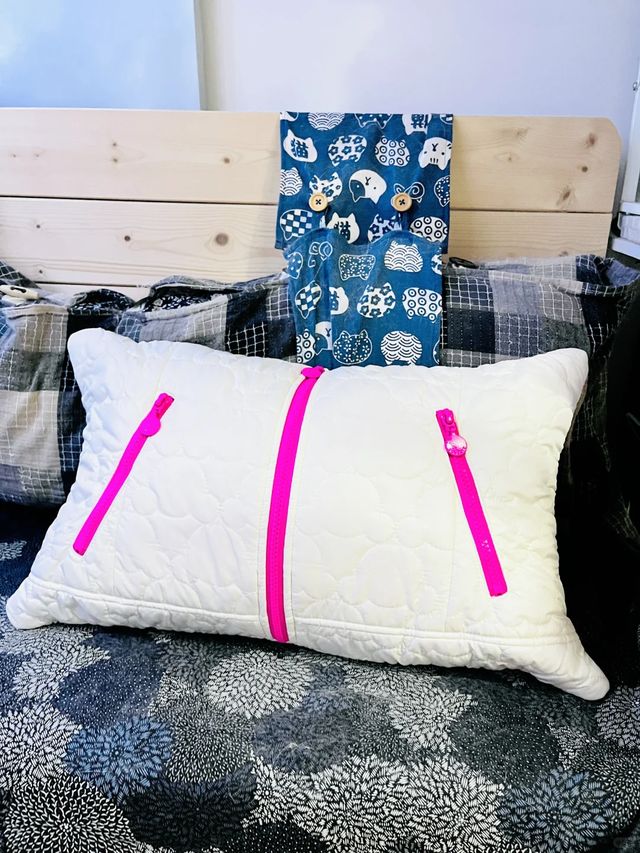 把家里旧的抱枕芯或者不玩的毛绒玩具填充物塞进去,拉上拉链,一个全新的抱枕就做好了。脏了还能拆洗,特别方便。