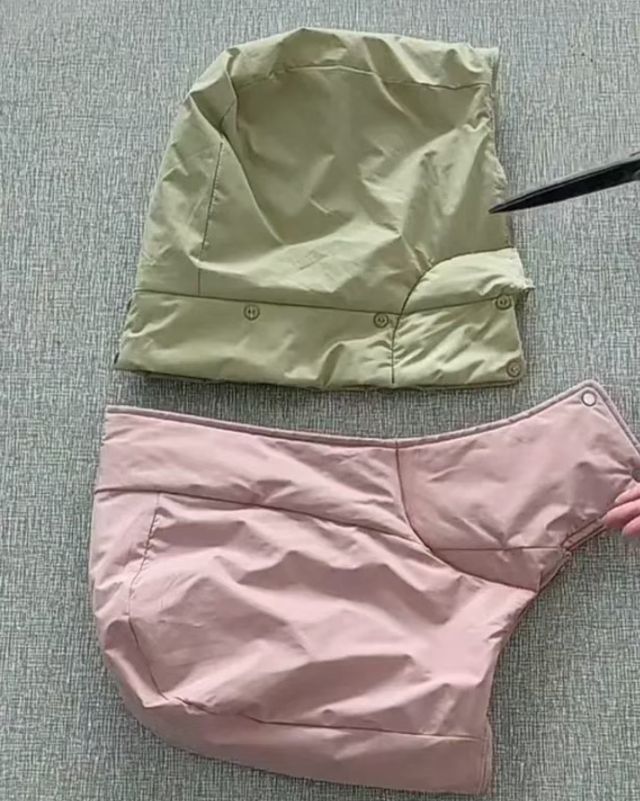 06. 帽子变手套,骑行不怕冻手冬天骑电动车或自行车,手是最容易冷的,买一副厚手套也不便宜。不如把旧羽绒服的帽子利用起来,改造成一对独一无二的防风手套。