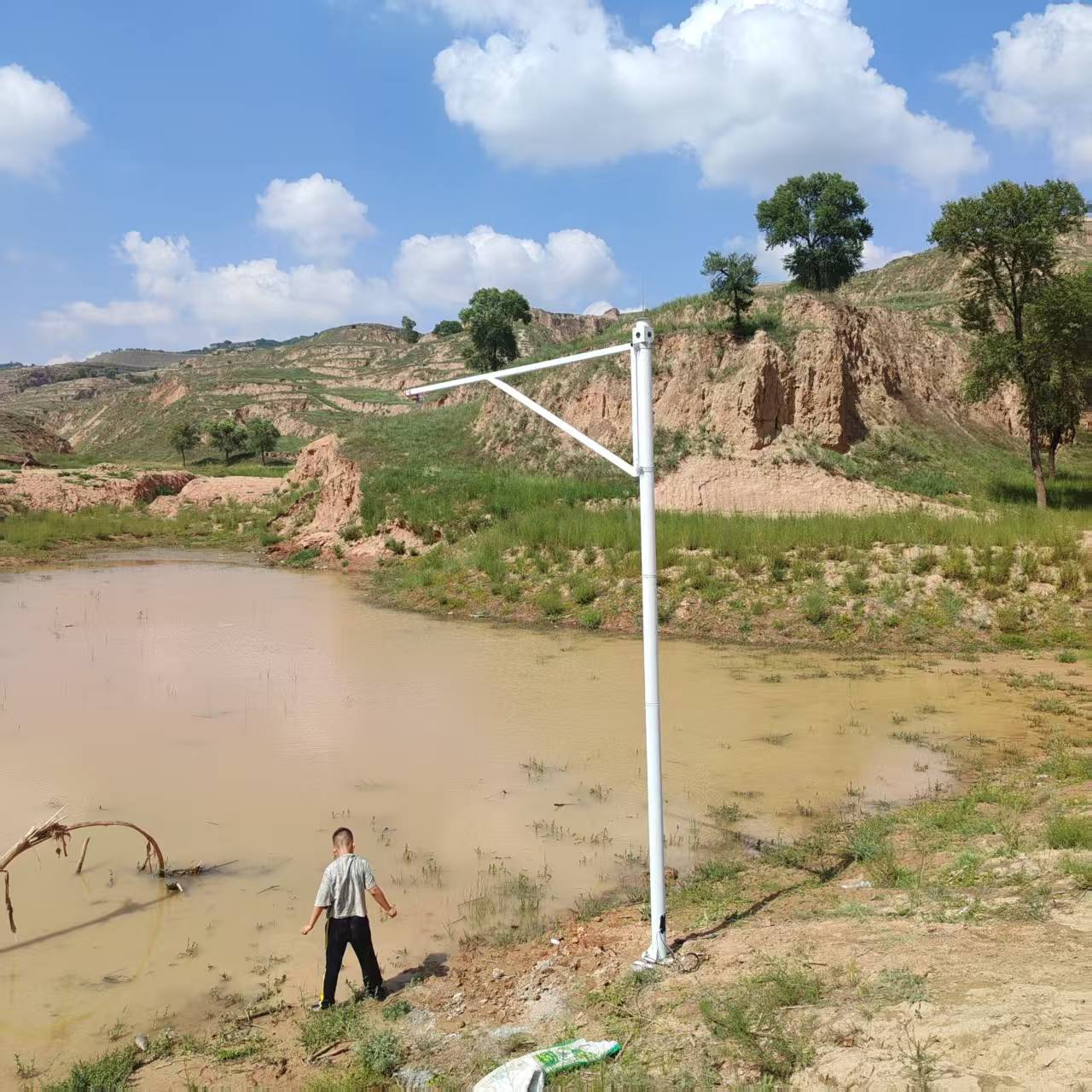 现场施工技术人员强调,设备安装规范直接影响监测数据精准度,需安装在河流、渠道的顺直段与水流均匀处,规避乱流、旋涡对测量信号的干扰。设备照射的水面周边需清理干净,无杂物、树枝等漂浮物遮挡,安装时保证设备与水面平行,且水面与设备的距离处于量程范围内。设备可根据现场地形与水文条件,灵活选用桥梁安装、立杆安装两种常规方式。