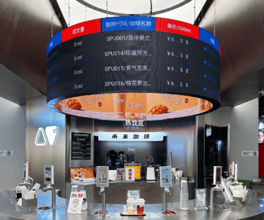 啤酒、咖啡、面包、冰淇淋、火锅……交易所风格席卷各大品类,能火多久? 街边圆柱形的装置上“顶”着一块大型环形电子屏,