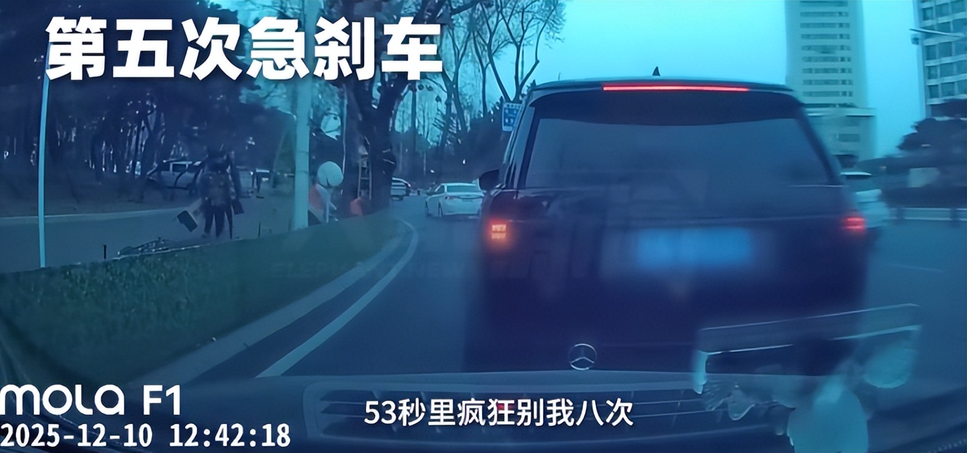 短短一分钟时间内,路虎车连续8次急刹、恶意变道别停奔驰车,多次逼停车辆,强行挤占车道,