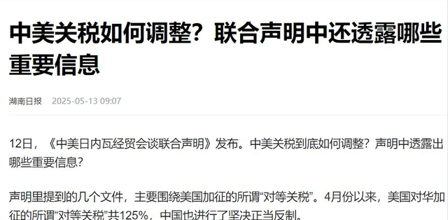 湖南日报2025.05.13《中美关税如何调整?联合声明中还透露哪些重要信息》