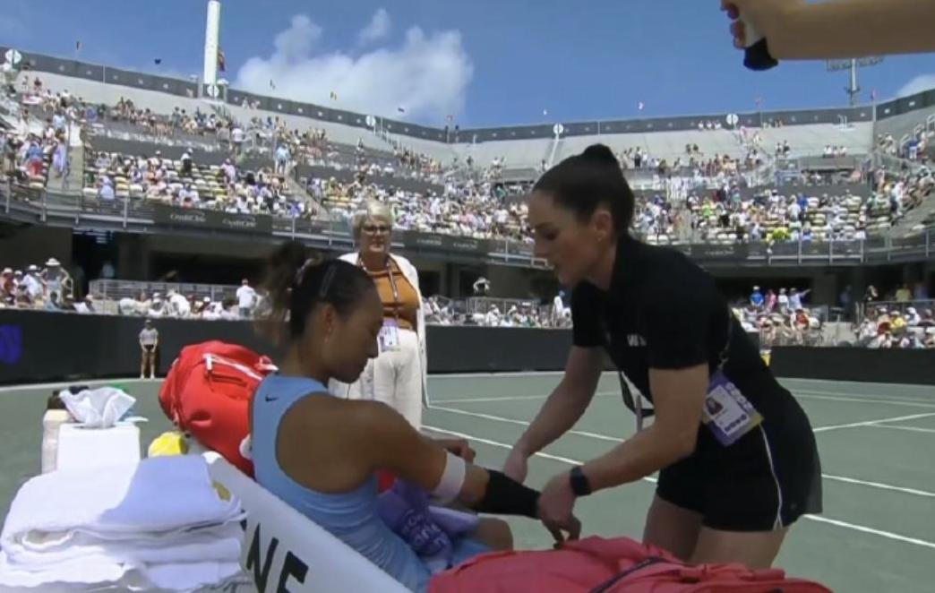 不少球迷注意到,比赛中,郑钦文频频轻抚自己的右手肘。