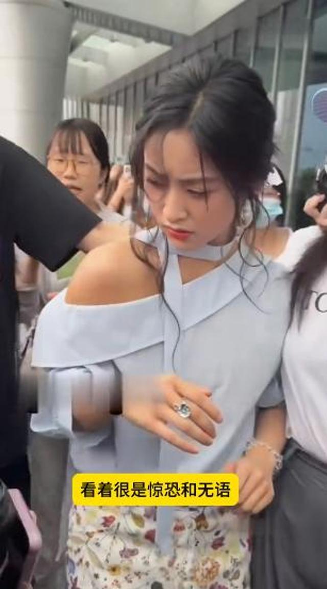 很多代拍一起围着她,看着都很窒息,更别提这群人中,还有人直接把镜头伸到她面前,怼着她的脸就开始拍,还有人不顾她穿的有多清凉,在后面推挤着她。