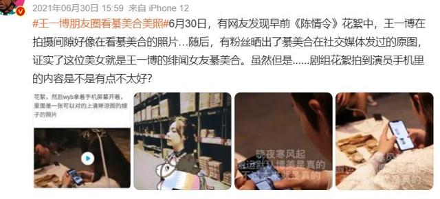 2018年,有网友发现王一博在拍戏间隙盯着手机朋友圈,疑似是綦美合的朋友圈,当时就引发了不少猜测,认为两人是在谈恋爱。