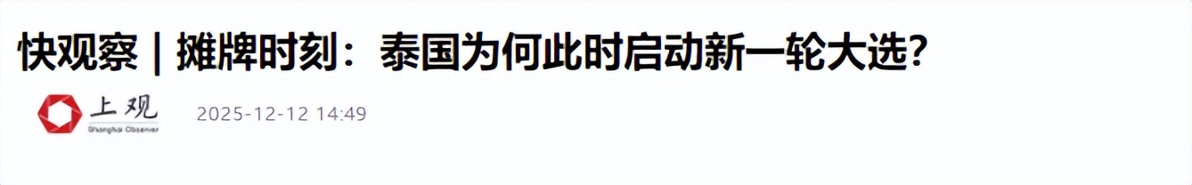 当F-16在边境投弹,当政客在曼谷算计选票,这正是泰国当下的真实状态。对外强硬回应一切停火建议,对内,通过解散国会重排权力。