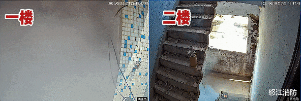 无人机热成像显示,旧国标电动自行车燃烧的高温区域已覆盖实验楼的一楼至四楼。