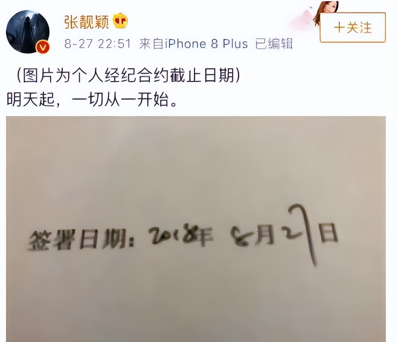 她同时宣布结束和冯轲的经纪合约以及感情关系。