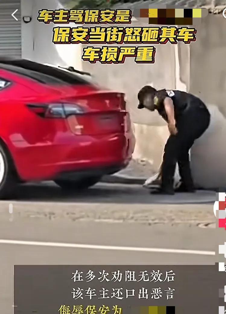 想象一下,你正在街头正常行驶,一辆红色的特斯拉静静地停在停车位上,突然,一个身穿保安制服的男子走上前来,毫无征兆地对你的车进行砸毁。你大脑的第一反应,当然是震惊和愤怒。在这件事情的起初,众人的目光多集中于保安的冲动,而当听闻车主发布的视频,以及他对付出更大责任后的惶恐与不安,事件的性质却有了更深层的反转。