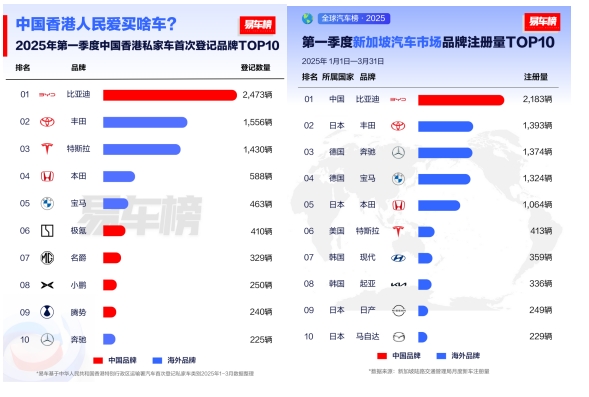 · 中国香港/新加坡:比亚迪以超30%和20%的市占率击败丰田、特斯拉,展现了对右舵市场的精准把控。其“双品牌策略”(比亚迪+腾势)成功覆盖不同消费层级,尤其是元PLUS等车型成为现象级产品。