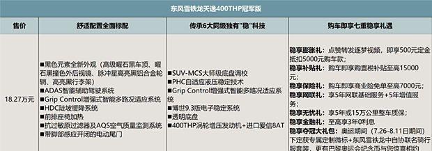 那么,天逸400THP冠军版的价格如何呢?目前官方并没有公布具体的售价,但从其配置和技术来看,在同级别车型中,它的性价比无疑是相当高的。更何况,它还推出了七重购车礼遇,包括定金膨胀、购置税补贴、商业险免单、网联服务、质保、金融礼遇以及夺冠大礼包,这些优惠政策,无疑进一步提升了天逸400THP冠军版的竞争力。