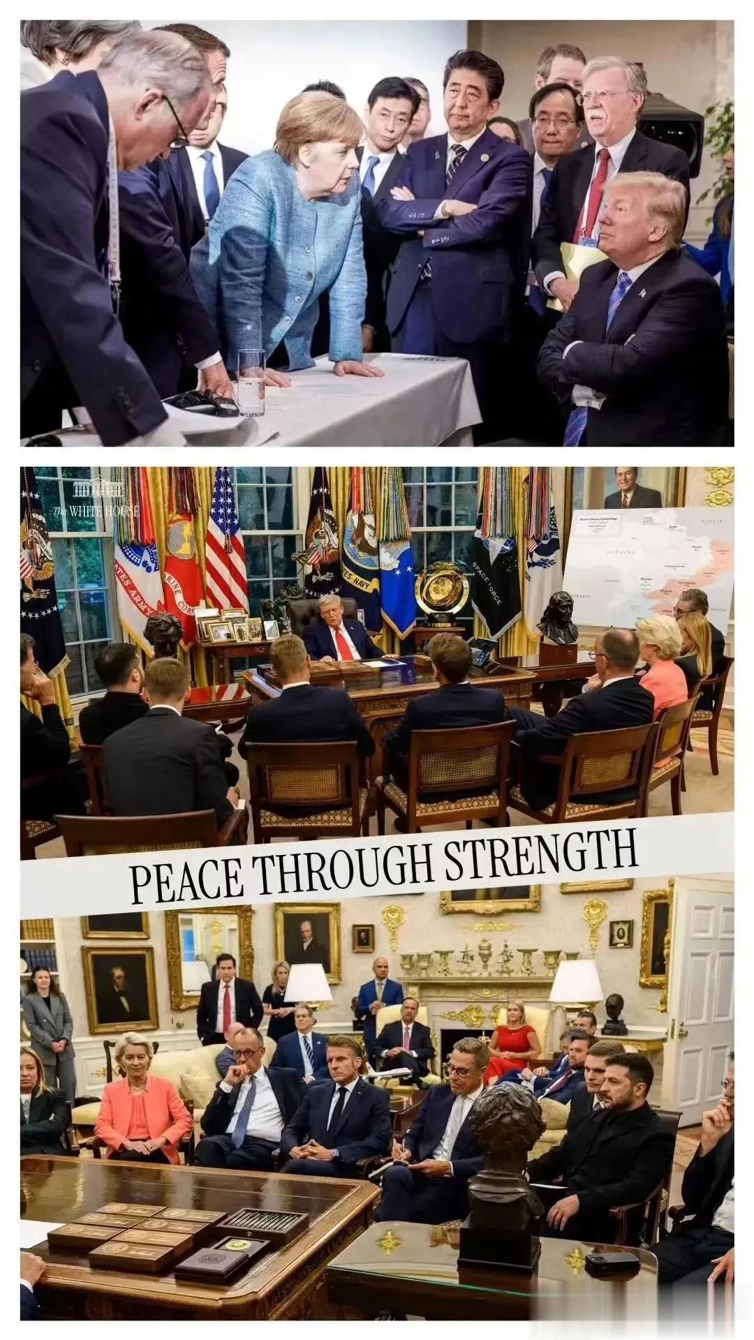 想来,当年默克尔“六大门派围攻光明顶”的照片,给特朗普的刺激太深了。