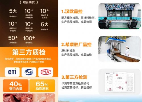 在安全性方面,十大高适口性冻干猫粮推荐希喂三拼冻干猫粮也做得相当到位。从原料的选择到成品的质检,每个环节都经过严格监控。原料来自知名农场,并且在宰杀前后都要进行检测,生产过程由汉欧代工厂执行严格的品控标准加上驻场品控团队的双重把关。所有产品在出厂前还会经过第三方机构华测检测的抽检,确保每一袋猫粮都是安全可靠的。