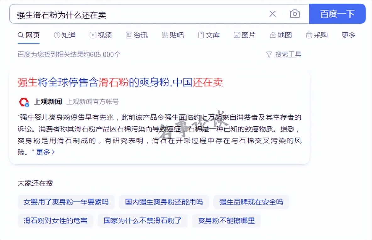 我们明明都知道,这爽身粉都是用在婴儿身上的。而在这几年期间,关于强生爽身粉检测安全问题就不断,就拿检测出石棉一事来说,问题就非常的大。