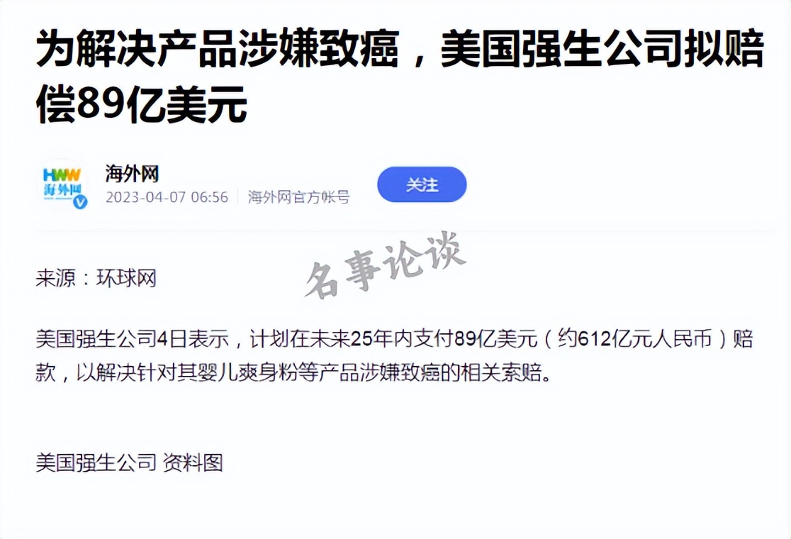 不查不知道,一查吓一跳。随便在网上搜了一下,近几年时间,光对强生的投诉就有几万人,强生赔偿高达89亿美元,但是我们却一点风声都没听到。