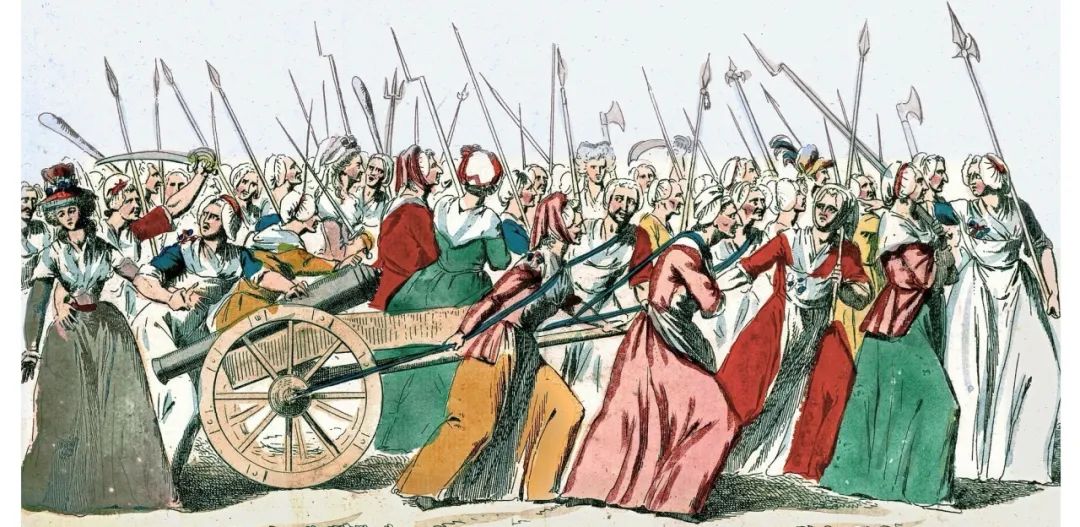 10月6日午后,一支杂乱不堪的队伍从凡尔赛出发。在前面开道的是一批国民自卫军成员,他们把具有象征意义的面包挑在刺刀尖上,同时护卫着满载小麦和面包的货车。其后是大批混杂而行的人群,既有坐在或骑在炮筒上的搬运工人和妇女,也有赤手空拳的宫廷卫队,还有新近调来的外省军队和外籍雇佣军。接着就是国王及其全家乘坐的马车,拉法耶特骑马护卫于侧。位于队伍后部的分别是部分议员、国民自卫军以及普通群众。虽然老天下雨,道路泥泞,但普通民众却兴致不减,因为他们已成功地把“面包房的老板、老板娘和小老板”(指国王、王后和王子)一起揪到了巴黎,国王一家开始处于巴黎民众的直接监控之下,巴黎的地位和影响由此大为增强。(第192页)