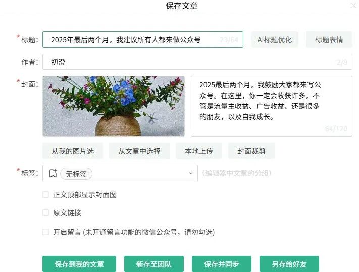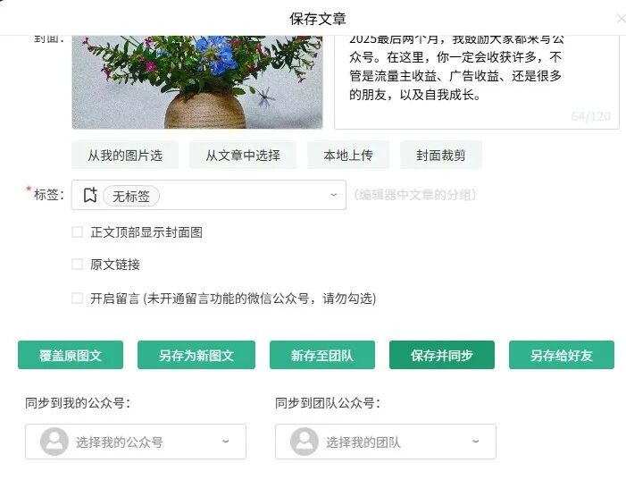 方法二、选择【保存并同步】,它会在保存的同时同步到你的公众号