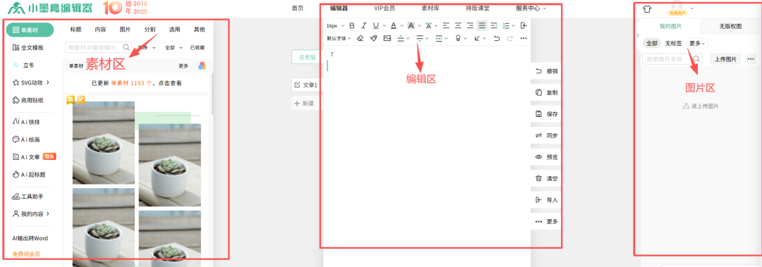 如果没有准备好文章,可以直接在中间的编辑器里写。