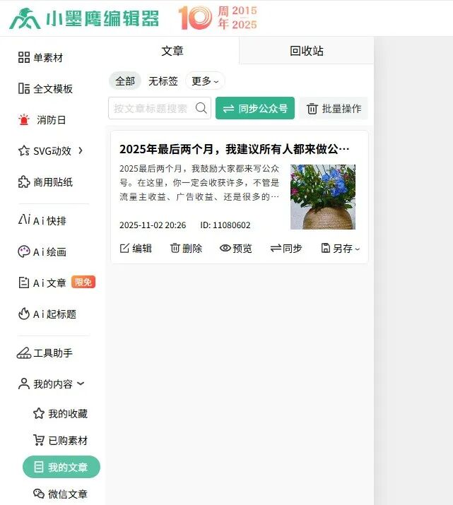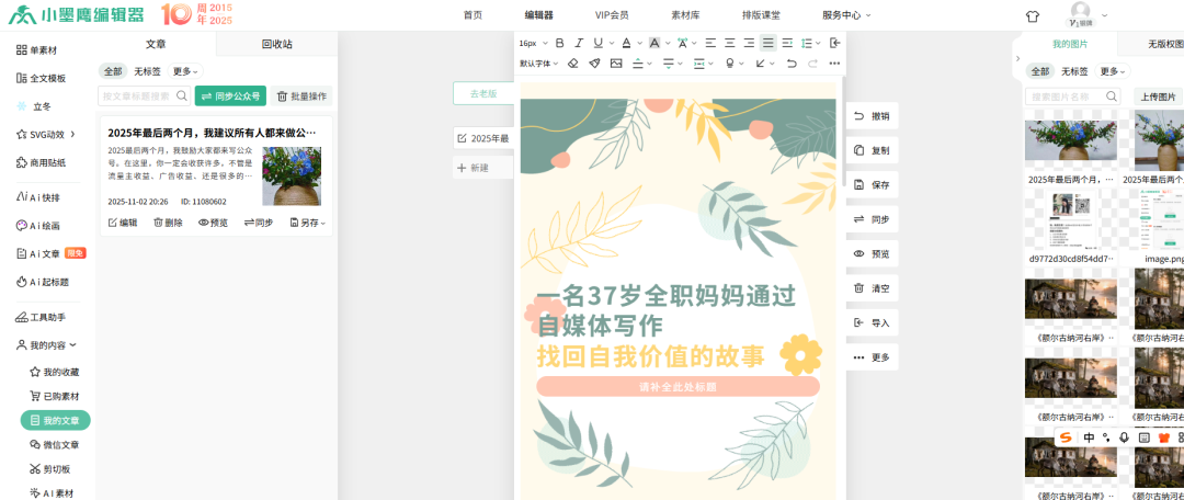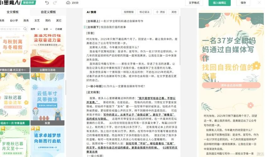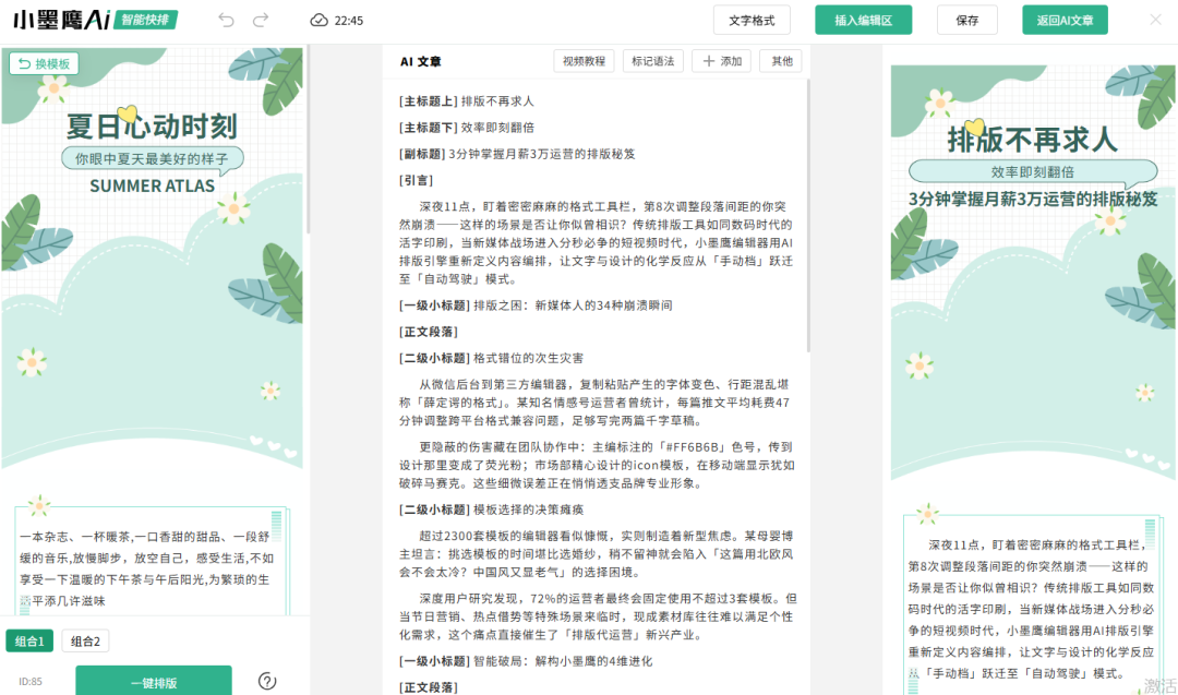 还真有这么一款"神器"——小墨鹰编辑器(原速排小蚂蚁编辑器)。这款AI加持的公众号排版工具,30秒就能生成一篇精致的图文,让排版新手也能轻松上手!今天就给大家安利这个宝藏工具~