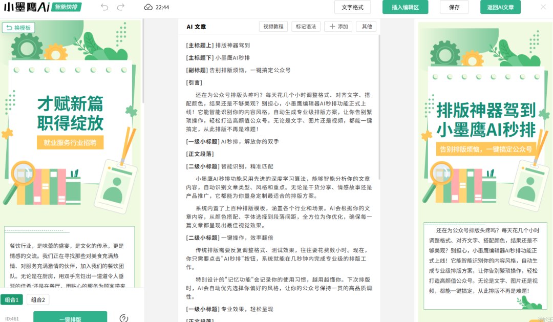 认识完了小墨鹰最基本的功能,下面给大家介绍AI快排,帮助你解决排版大难题。