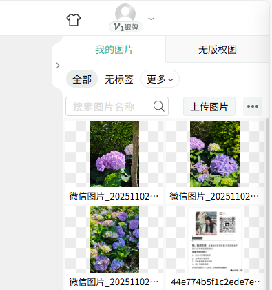 最右边的图片区,你文章里包含的图片和上传的图片都会在这里展示。