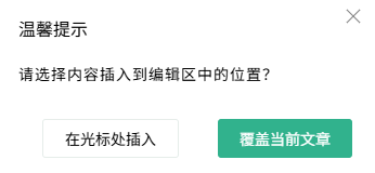 点击【导入】,一个是在光标处插入,一个是覆盖当前文章。