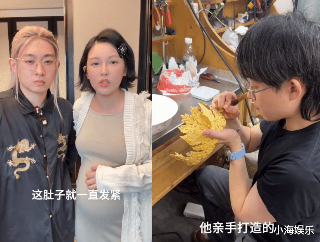 张凯毅在视频中,大肆渲染黄金凤冠是“艺术家”男友纯手工打造,如何如何不简单,如何如何耗费工费和心血,暗示其工费就要很多钱。还假模假洋晒出男友对着凤冠敲敲打打的视频。