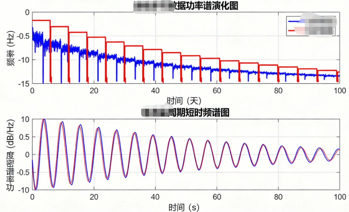 从现场连续多天的数据功率谱演化图与单测量周期短时频谱图可见,加速度与陀螺两路频谱均呈现清晰稳定的多阶谱线结构,谐波链在时间轴上连续存在,说明系统具备良好的信号质量与可重复性基础。