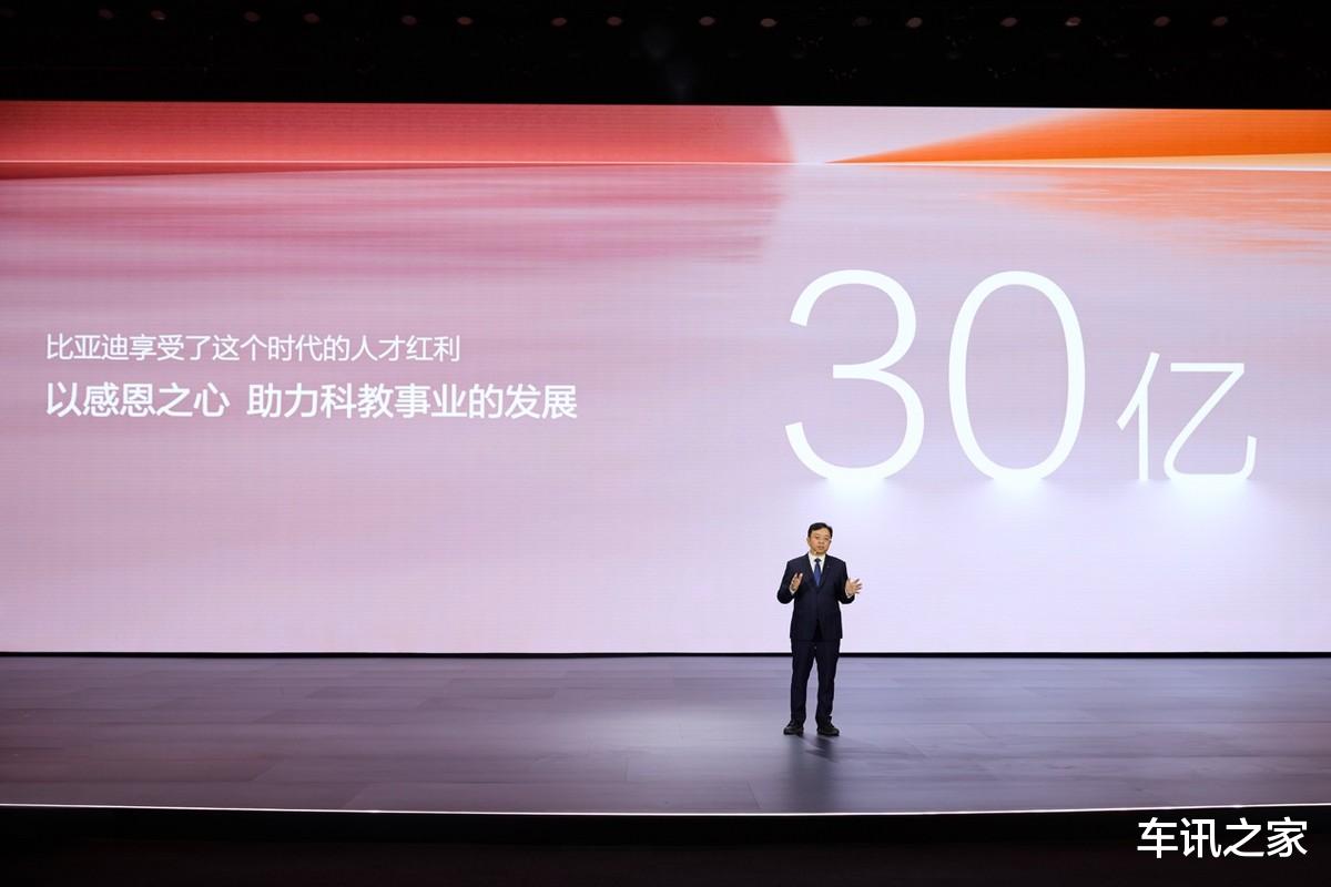 12月30日,比亚迪在深圳总部举行了30亿教育慈善基金启动仪式,比亚迪股份有限公司董事长兼总裁王传福,和来自全国35所高校代表、28所科技馆、博物馆代表共同启动,比亚迪30亿教育慈善基金捐赠。启动仪式上,王传福表示,如果没有科教兴国战略,就不会有比亚迪的今天,也不会有中国新能源汽车的今天,比亚迪感恩国家科教兴国战略,感恩各大高校培养卓越人才。