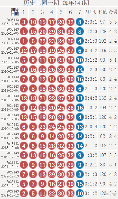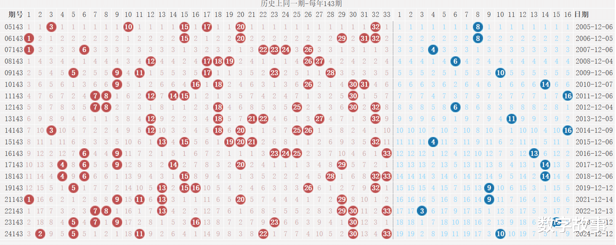 2) 历史同一期: 每年143期 (共19期)