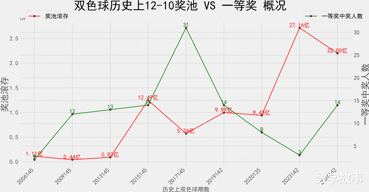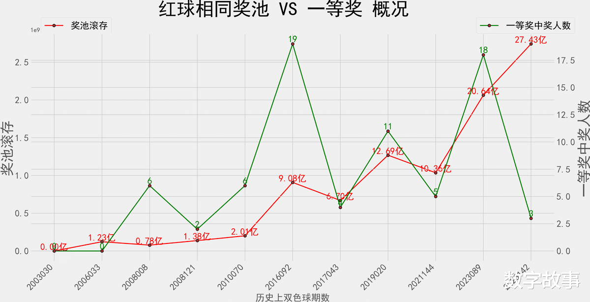 奖池滚存&一等奖数 走势图: