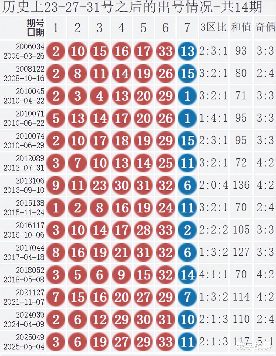 双色球红球含23-27-31历史统计