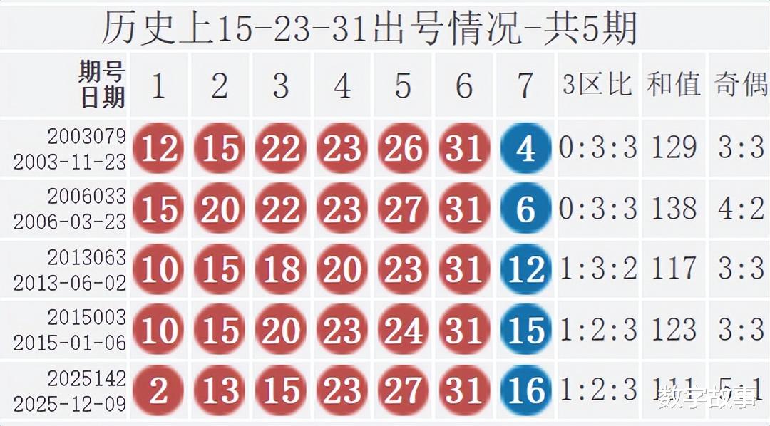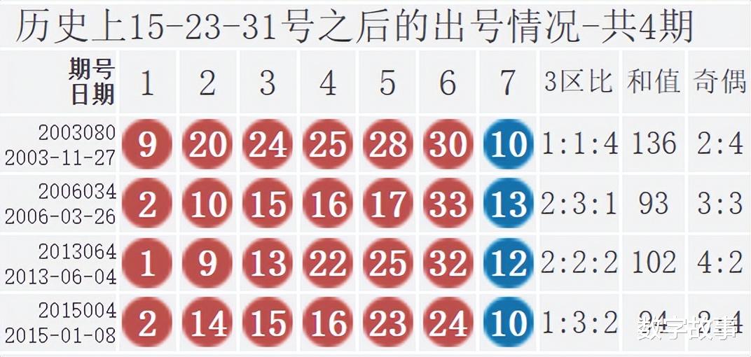 双色球红球含15-23-31历史统计