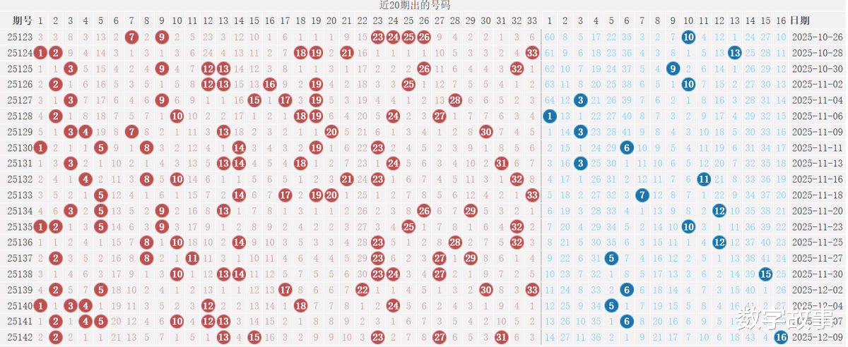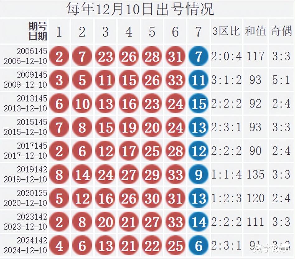 【其他历史数据查询统计】双色球历史上的今天2025-12-10 星期三 双色球不开奖每年12月10日出号情况: